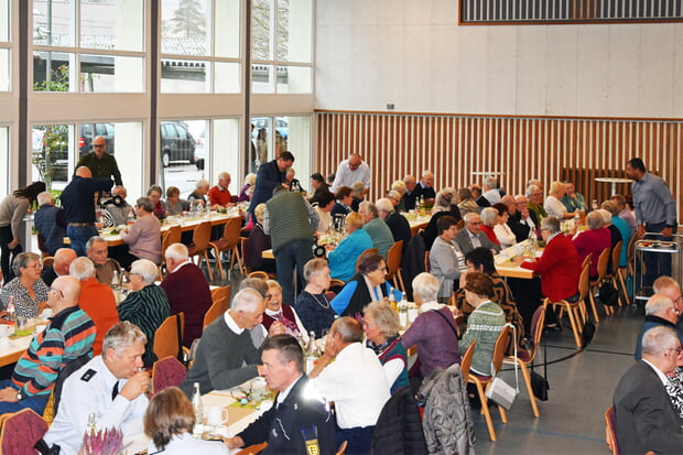 Ein besonderer Programmpunkt war das Präventionstheater der Polizei, das über aktuelle Betrugsmaschen wie Schockanrufe und Trickbetrug informierte. In der anschließenden Fragerunde konnten die Gäste direkt mit den Beamtinnen und Beamten ins Gespräch kommen. Mit viel Schwung ging es sportlich weiter: Zwei Gruppen des TSV Pfaffenhofen präsentierten Tanz- und Turnvorführungen und sorgten für reichlich Applaus im Saal. Zum Abendessen wurde von Grauer Genuss Catering Fleischküchle mit Kartoffelsalat serviert.