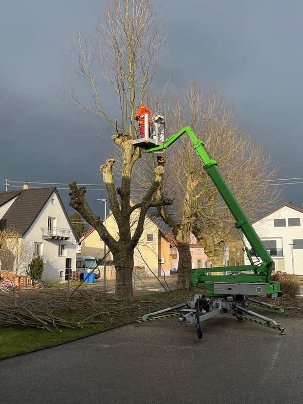 Im Februar sind im Bauhof die meisten Mitarbeiter für die Gehölzpflege eingesetzt. Das Hauptaugenmerk liegt dann auf Schnittarbeiten. Diese Arbeiten sind insbesondere an Bachläufen, aber auch auf öffentlichen Plätzen nötig. So wurden auch die Platanen vor dem Rathaus wieder turnusgemäß zurückgeschnitten. Diese Arbeiten dürfen nur noch bis Ende Februar durchgeführt werden, da danach die Nistzeit beginnt.