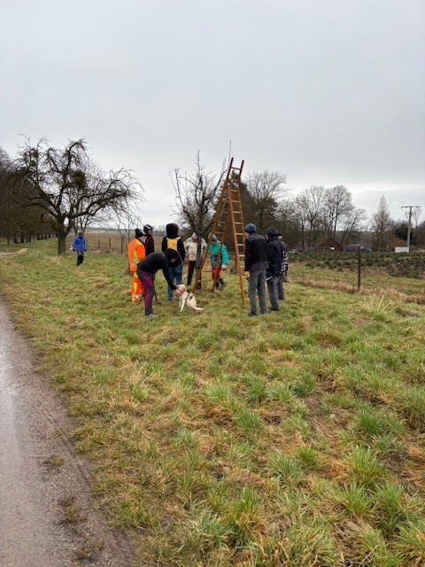 Eine weitere Gruppe machte sich auf zu einer Obstbaumwiese um dort den nötigen Pflegeschnitt durchzuführen. Unter Anleitung von Dr. Stark konnten auch „Anfänger“ bei dieser Aktion dabei sein.